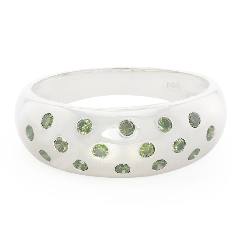 Entdecken Sie das faszinierende Funkeln unseres Rings aus Smaragdgrünem Diamant und Sterlingsilber. Dieses Schmuckstück rühmt sich einer Kollektion von 16 leuchtend smaragdgrünen Diamanten, von denen jeder sorgfältig in eine runde Brillantform geschliffen wurde, mit einem Gesamtkaratgewicht von 0,26 ct, die eine schillernde Konstellation über das Band bilden. Der aus hochwertigem 925er Sterling Silber gefertigte Ring wiegt ca. 2,55 Gramm und ist auf Langlebigkeit und Eleganz ausgelegt. Die verspielte Anordnung der Steine entlang des 21x20,5 mm großen Rings bietet eine moderne Variante klassischer Raffinesse, die sich sowohl für das tägliche Tragen als auch als Ergänzung zur Abendgarderobe eignet. Dieser Ring ist das unverzichtbare Accessoire für alle, die einen Farbtupfer und einen Hauch von Funkeln in ihrer Schmucksammlung schätzen.