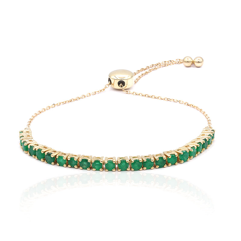 Dieses atemberaubende Armband präsentiert die lebendige Schönheit von zweiundzwanzig AAA-Smaragden aus Sambia, von denen jeder sorgfältig in faszinierenden Rundungen geschliffen wurde. Die glänzende Fassung aus 10-karätigem Gelbgold wiegt etwa 3,6 Gramm und bildet einen eleganten Kontrast zu den üppigen grünen Edelsteinen von insgesamt 1,3 Karat. Mit einer verstellbaren Länge von 17,5 bis 21,5 cm ist dieses Armband sowohl vielseitig als auch luxuriös und eignet sich perfekt, um Ihr Handgelenk zu besonderen Anlässen zu betonen oder das tägliche Tragen aufzuwerten.