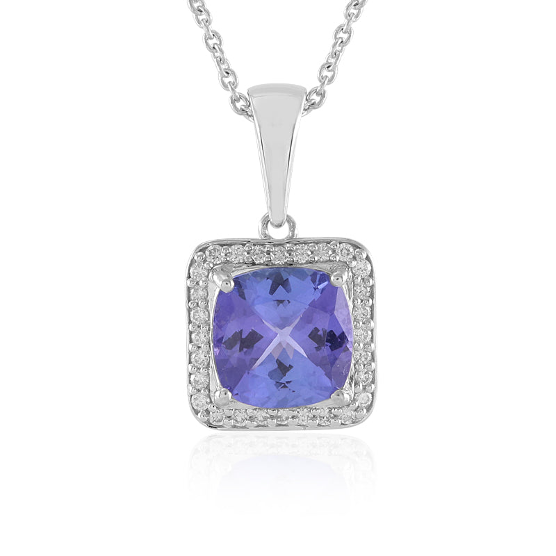 Erleben Sie Luxus mit dieser exquisiten AAA-Tansanit-Halskette aus 14 Karat Weißgold. Der antike Tansanit im Kissenschliff wird von 28 SI2-Diamanten ergänzt, die für eine brillante Ausstrahlung sorgen. Diese Halskette eignet sich perfekt für elegante Anlässe und verleiht jedem Outfit einen Hauch von Raffinesse. Sie ist ideal für die Abendgarderobe oder besondere Anlässe und wertet Ihr Ensemble mühelos auf.