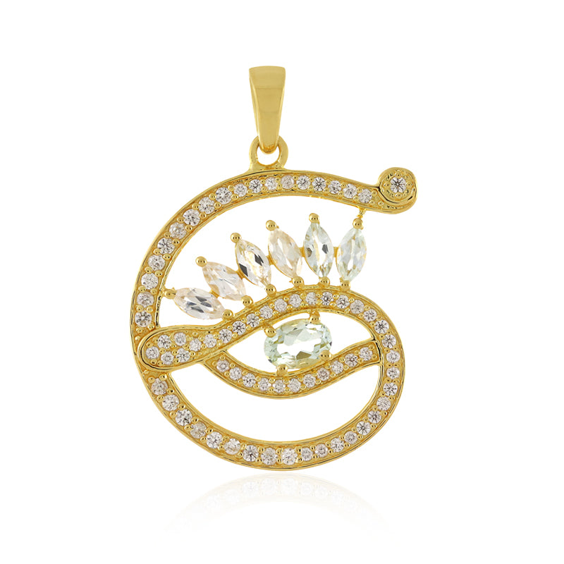 Dieser Anhänger aus vergoldetem 925er Sterlingsilber ist mit einem glänzenden brasilianischen grünen Amethysten besetzt, der von einer Konstellation kambodschanischer Zirkonsteine von insgesamt 2,39 Karat umgeben ist. Mit seinem auffälligen Oval- und Marquise-Schliff strahlt der Anhänger Eleganz aus. Er eignet sich sowohl für formelle Anlässe als auch für Freizeitaktivitäten und ist ein vielseitiges Schmuckstück, das jedem Outfit einen Hauch von Frühling verleiht.