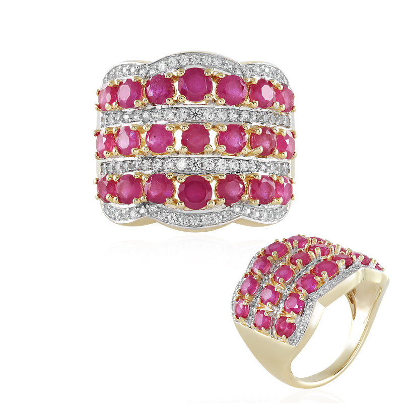 Entdecken Sie die lebendige Anziehungskraft unseres Madagaskar-Rubinrings, der in glänzendes, vergoldetes Sterlingsilber gefasst ist. Dieses auffällige Schmuckstück ist mit 2,565 ct tiefroten Rubinen besetzt, die durch das Funkeln kambodschanischer Zirkone von insgesamt 0,83 ct ergänzt werden und einen opulenten und auffälligen Kontrast bilden. Dieser Ring eignet sich perfekt, um Ihrer Abendgarderobe einen Hauch von Raffinesse zu verleihen. Die reiche Farbpalette und das komplizierte Design machen ihn zu einem Gesprächsanlass bei jeder gesellschaftlichen Veranstaltung.