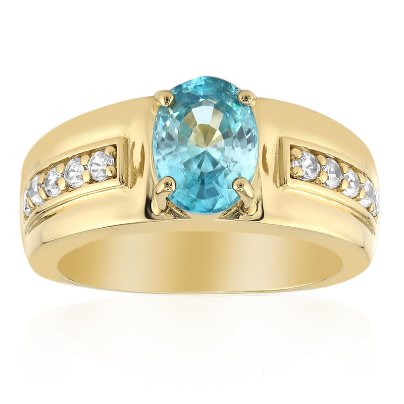 Dieser exquisite Ring präsentiert den fesselnden blauen Farbton eines ovalen Zirkons im Brillantschliff von 1,663 Karat aus Kambodscha. Akzentuiert mit 10 funkelnden Zirkonen im Rundschliff von insgesamt 0,352 ct, ist das Stück aus hochwertigem 925er Sterlingsilber mit einer glänzenden Goldplattierung gefertigt. Mit einem Gewicht von ca. 3,63 g ist dieser Ring mit seinen satten Goldtönen und schillernden Edelsteinen eine luxuriöse Ergänzung für jedes Ensemble. Er ist ideal für besondere Anlässe oder als bemerkenswertes Geschenk und vermittelt Eleganz und Raffinesse in einer perfekten Größe von 23x20 mm. Kombinieren Sie ihn mit einem klassischen Cocktailkleid für einen Hauch von Glamour oder mit einem formellen Outfit für ein raffiniertes Finish.