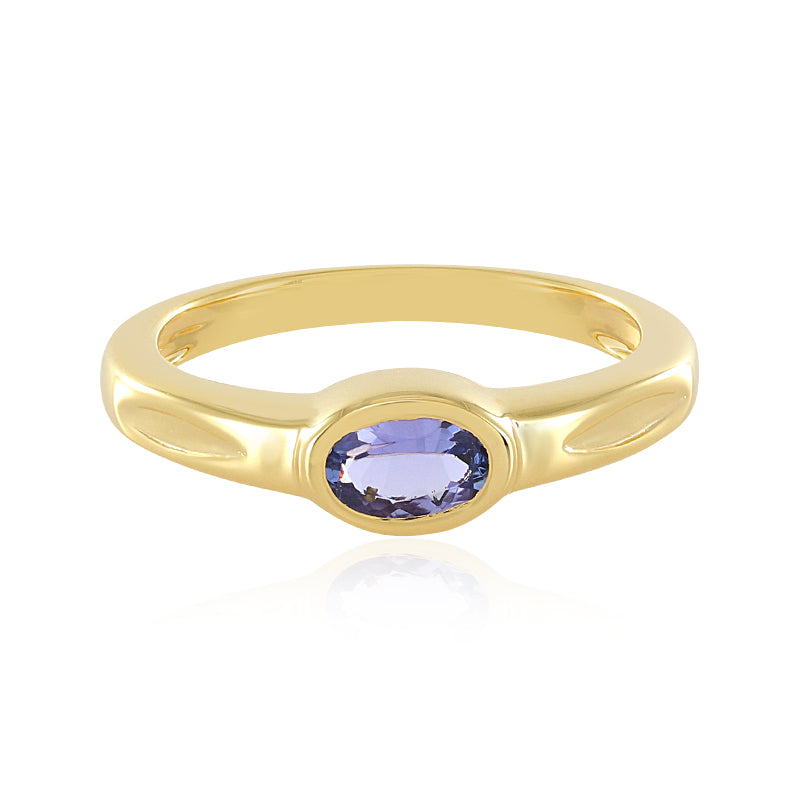 Entdecken Sie die heitere Schönheit Tansanias mit diesem charmanten Ring. Ein Tansanit im Ovalschliff von 0,45 Karat wird von vergoldetem 925er Sterlingsilber umarmt, das einen Hauch von Raffinesse vermittelt. Dieses Schmuckstück ist nicht nur ein stilvolles Statement, sondern auch ein Beweis für die Handwerkskunst, die einen so zarten Edelstein in den Vordergrund der Mode stellt. Er passt sowohl zum legeren Brunch als auch zum formellen Abend und verleiht Ihrem Outfit einen Hauch von Eleganz.