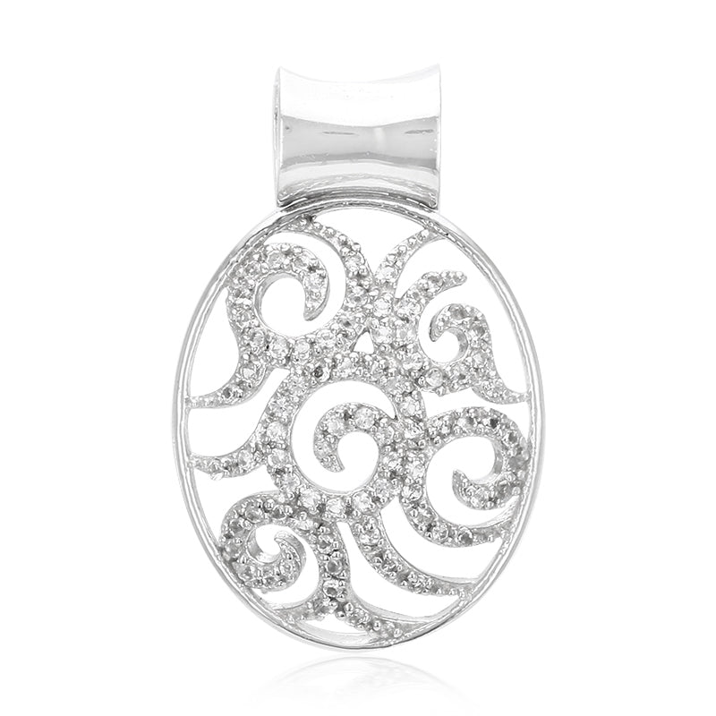 Entdecken Sie die Faszination dieses Anhängers aus Sterlingsilber, der mit 79 runden weißen Topasen im Brillantschliff aus Brasilien glänzt. Die 0,416ct Edelsteine sind kunstvoll angeordnet, um das filigrane Design zu akzentuieren, das eine Mischung aus klassischer Eleganz und modernem Flair bietet. Mit einem Gewicht von ca. 3,06 g verspricht dieser Anhänger eine dauerhafte Ergänzung Ihrer Schmucksammlung zu werden. Er ist ideal, um Alltagsoutfits einen Hauch von Glanz zu verleihen oder die Abendgarderobe mit seinem strahlenden Charme aufzuwerten.