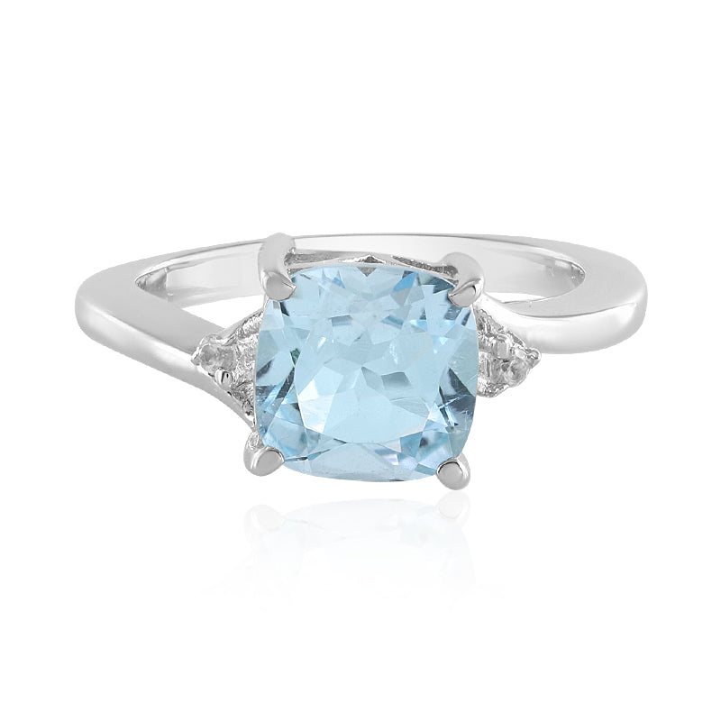 Schmücken Sie Ihre Hand mit der himmlischen Schönheit des Himmels, eingefangen in diesem bezaubernden Topasring. Das Herzstück, ein 2,316 ct brasilianischer himmelblauer Topas im antiken Kissenschliff, misst ca. 8 mm und bietet eine ruhige azurblaue Leinwand, auf der das Licht tanzen kann. Dieser Edelstein wird von zwei kambodschanischen Zirkonen von insgesamt 0,04 Karat akzentuiert, die ein subtiles Funkeln hinzufügen, das an ferne Sterne erinnert. Diese himmlischen Steine werden von einem fein gearbeiteten 925er Sterlingsilberband umschlossen, das großzügig mit Platin plattiert ist, um dauerhaften Glanz und Verführung zu gewährleisten. Dieser Ring ist ideal für besondere Anlässe oder als Farbtupfer für den Alltag. Er ist eine exquisite, moderne Variante der Vintage-Eleganz.